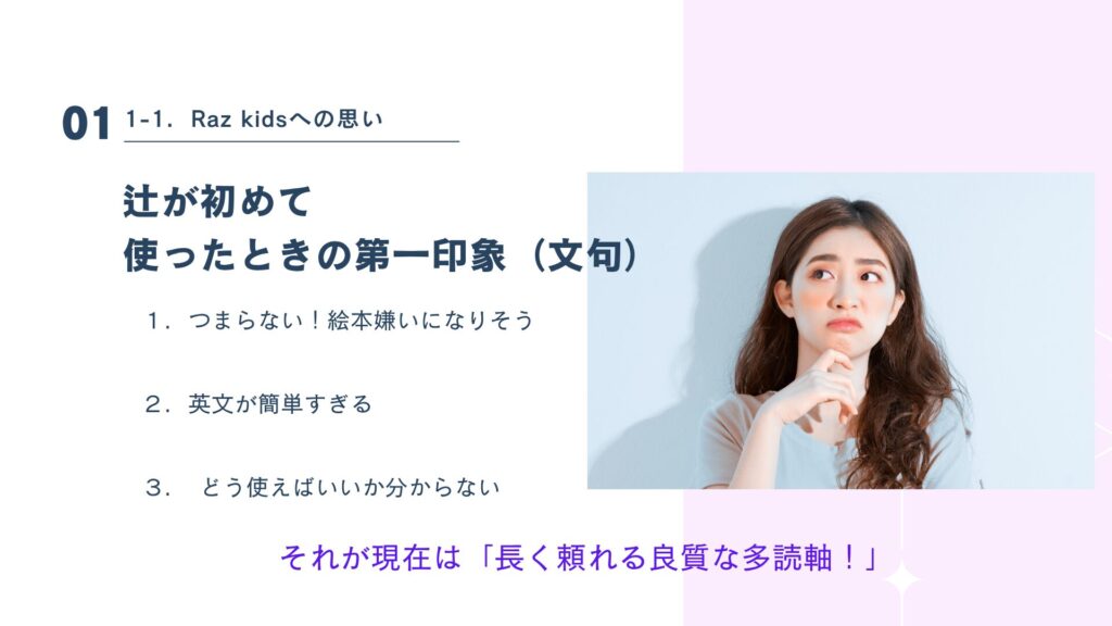 ・英語を乳幼児期から始めている年中頃~小学校低学年のお子さんがRazを利用するという前提での解説です
